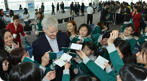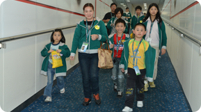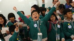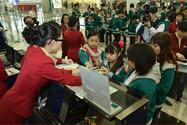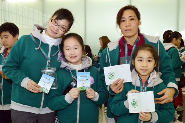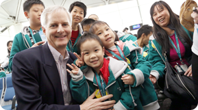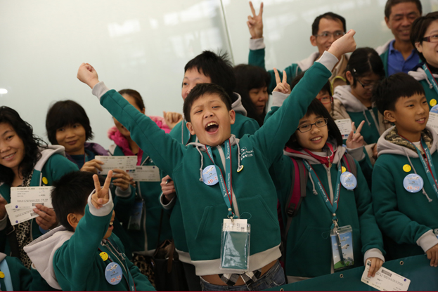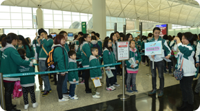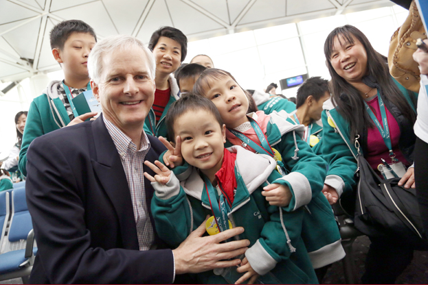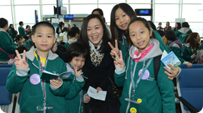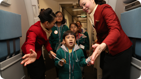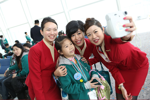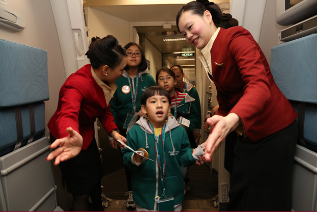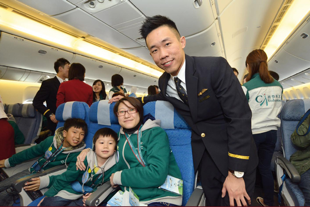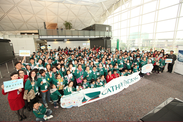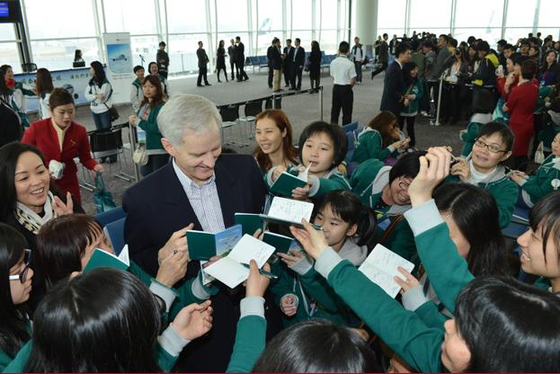 國泰航空行政總裁史樂山與初次乘坐飛機的小朋友們開心合照。