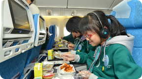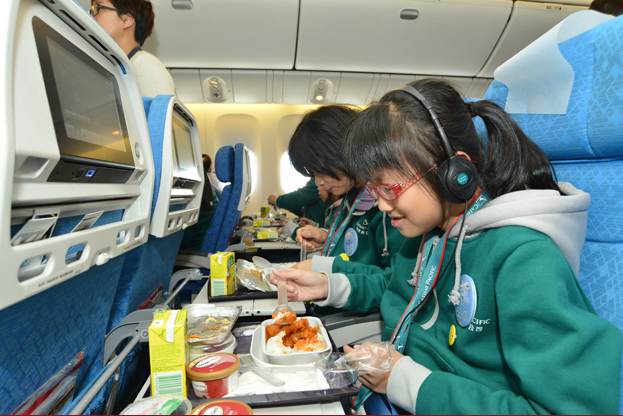 小朋友初嚐飛機餐,興奮之情難以形容。
