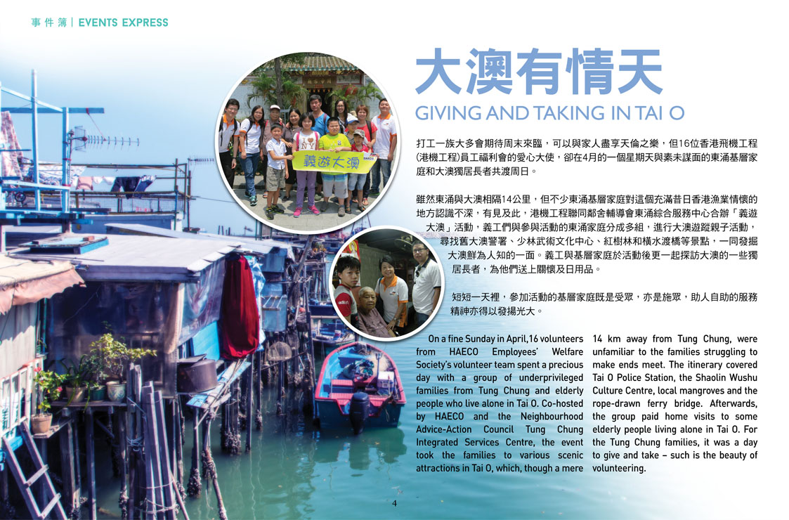 義工與基層家庭探訪一些住在大澳的獨居老人,發揮助人自助的精神。