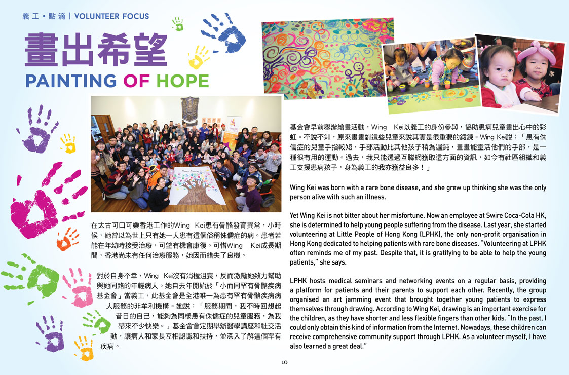 一班罕有骨骼疾病患者於2月28日的「國際罕有疾病日」參加基金會的大型手印工藝製作,希望喚起社會對罕有疾病的關注。