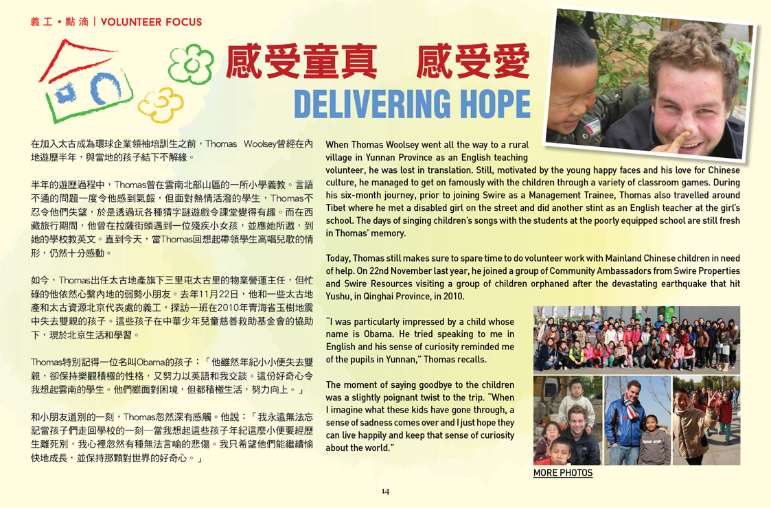 Thomas在雲南森吉梅朵慈善學校義教時與當地學生打成一片。