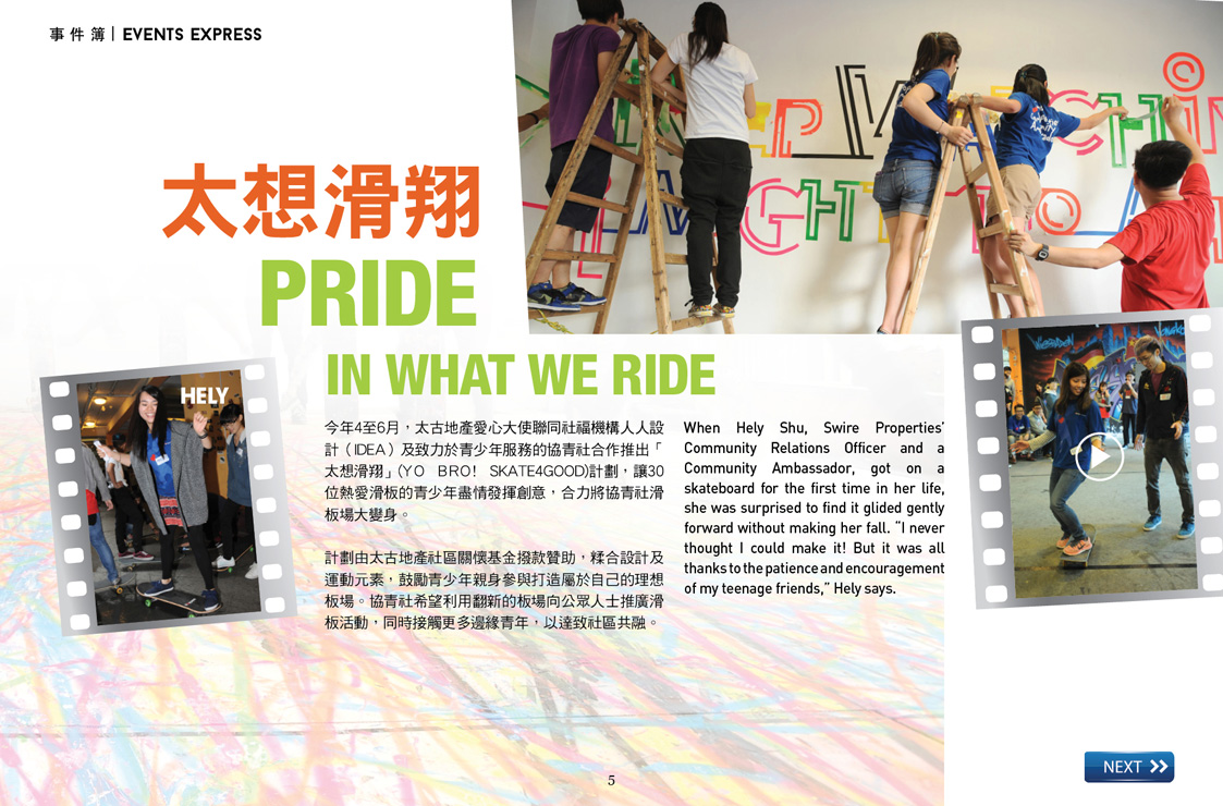 愛心大使與參加「太想滑翔」的青少年一同發揮創意,把他們創作的口號「Skate to extreme」噴於牆上。