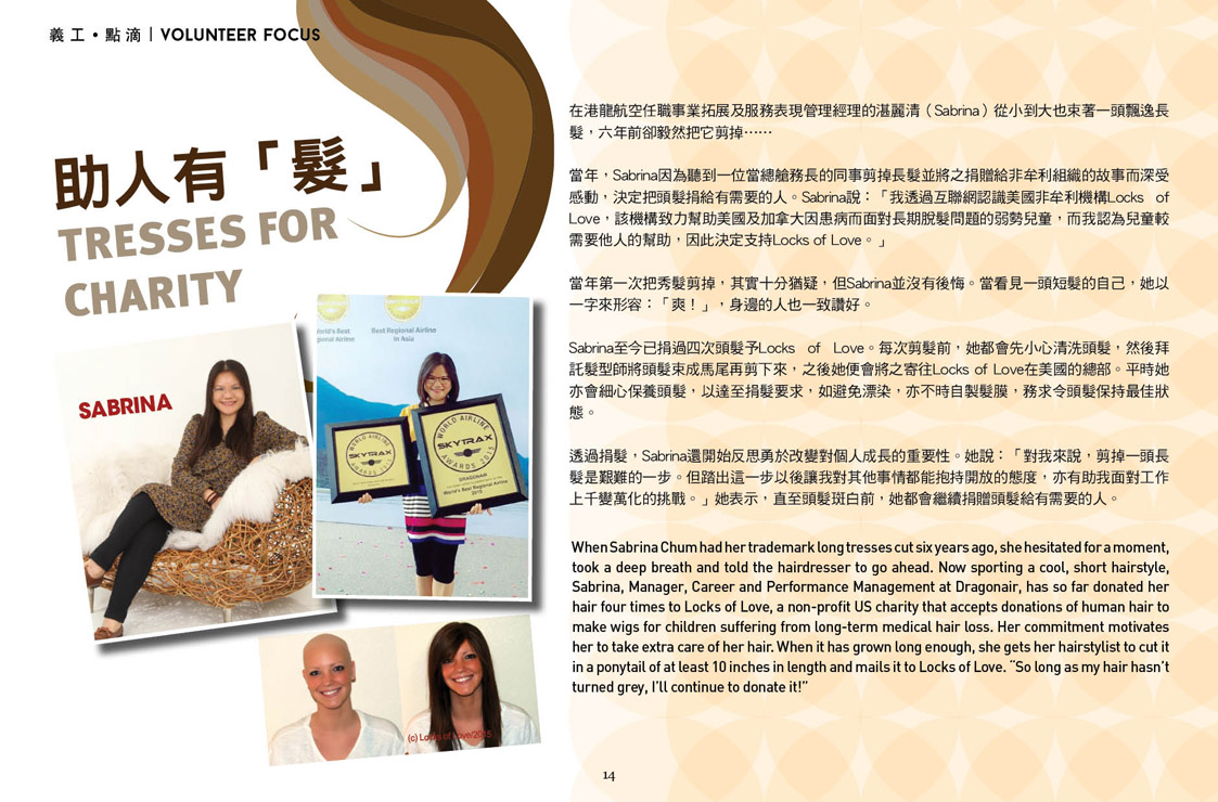 Locks of Love將有心人捐贈的頭髮製成假髮,幫助美國及加拿大因患病而面對長期脫髮問題的人士。(c) Locks of Love/2015