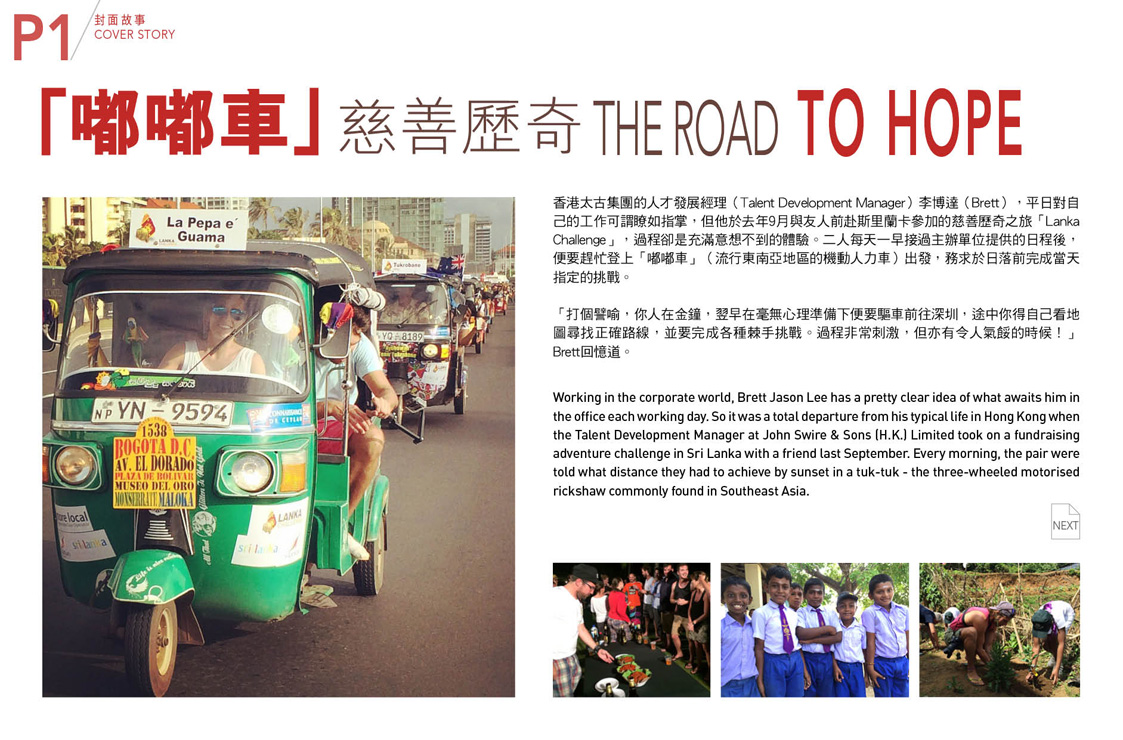 賽事期間,他們曾到訪多間受惠學校,和學生一同植樹,又為學校贈送樂器。而談到要在言語不通的情況下教一群小學生唱英文歌,Brett的臉上掛上了天真的笑容。