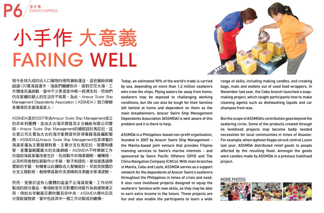 ASSMDA不時會為海員家人舉辦生計工作坊,教授他們各種手藝,好讓他們日後藉此幫補家計。